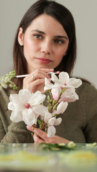 — Магнолія — витончена, ніжна і разом з тим вражаюча квітка. Саме цей характер важливо відтворити в ботанічній скульптурі. Мене надихає повний цикл життя квітки — від бутона до моменту, коли вона починає зів’янути. На кожному етапі я бачу мистецтво природи. Створення різних фаз цвітіння в одній роботі, як на мене, підсилює відчуття реалістичності.