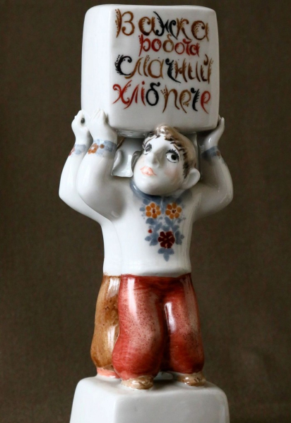 В. Албул Н. Албул. «Праця» («Ледачого мухи з’їдять. Хворий на лінощі»). Городницький фарфоровий завод. 1983 рік. Музей історичної спадщини та виробів Городницького фарфорового заводу.