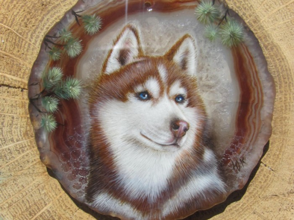 Хаскі на агатовому зрізі виглядає як справжня. Як майстерно виписане хутро!РЕКЛАМА
