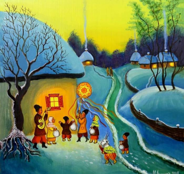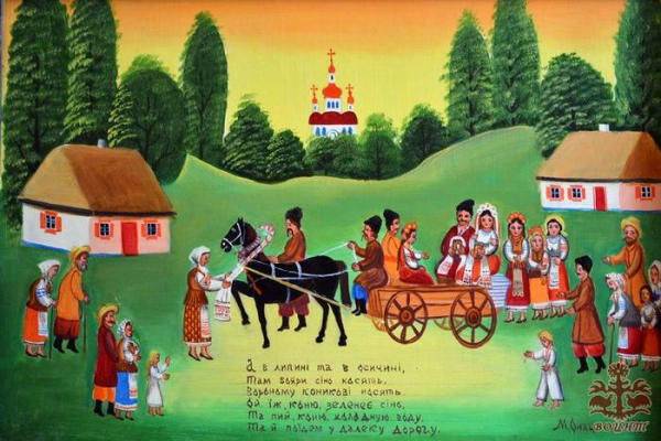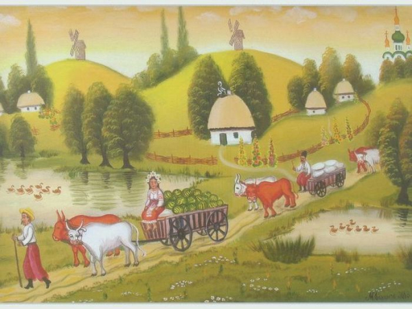 Його народні мотиви несподівано відкрили глядачам всесвіт райської, ідеальної України, яка, як здавалося багатьом, зникла безповоротно. Це та Україна святковості, ніжності, добра та мудрої простоти, яка існувала в дитинстві живописця, що створював свій досконалий світ. Всесвіт, в якому реальність, очищена від повсякденності та життєвих проблем, переноситься в інший вічний вимір, де панує те прекрасне й добре, що формувалося століттями в народній свідомості. Де на вершині – церква, а біля підніжжя – зелений ліс. Де біля кожної оселі – квіти, а в кожній хаті – діти. Де всі люди – добрі сусіди, а зло присутнє хіба що у вигляді маленького дивовижного чортика з гоголівських «Вечорів на хуторі біля Диканьки»…