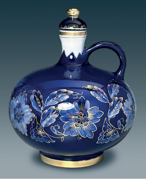— Предмет водночас простий та урочистий — такий, яким нерідко буває справжній фарфор. Кобальтове тло ніби всмоктує світло, а квітковий візерунок повертає його — у вигляді пелюсток, листя й тонких рослинних ліній. Золота облямівка додає тепла, мов тихий промінь на глибокому синьому полі. І здається, що цей графин створений не тільки для напою. Він — також для тих вечорів, коли розмова триває довше за келих, а звичайні речі стають прекрасними. Кобальтові квіти на кераміці заворожують власною витонченістю.