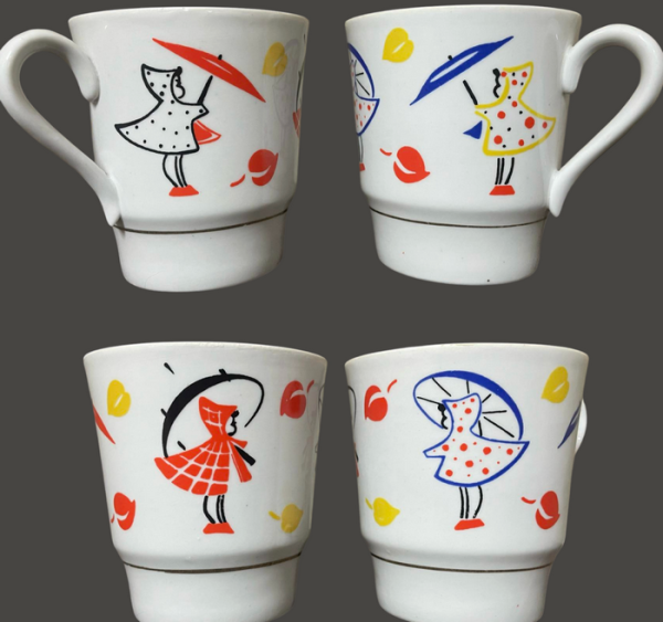 На білих глянсових стінках по колу – дівчатка з парасольками. Вони ніби танцюють у легкому вітерці, серед жовтих і червоних осінніх листочків, що кружляють навколо. Їхні плащики як спалахи радості. А парасольки – яскраві акценти, що створюють настрій. Ці чашки – втілення радості в простому: спогад про дитинство, прогулянку під дощем. Вони наповнюють дім атмосферою затишку й душевного тепла, нагадуючи, що навіть найсіріший день може бути розфарбований кольорами щастя – достатньо лише парасольки та гарного настрою. Мрію про такі чашки з дівчатками під парасольками. У них відображена дитяча віра в чудо.