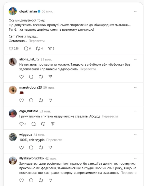 Ось ми дивуємося тому, що допускають вселяких пропутінських спортсменів до міжнародних змаганнь… Тут б…а червону доріжку стелять воєнному злочинцю! Світ зʼїхав з глузду… Остаточно…