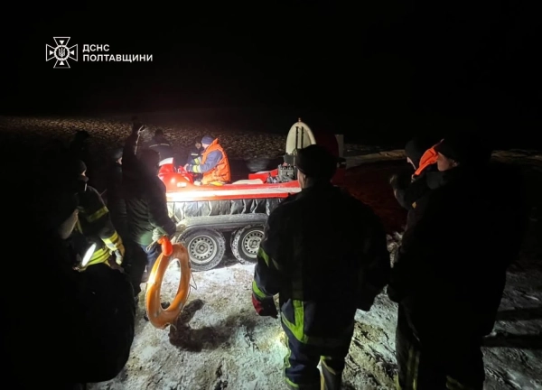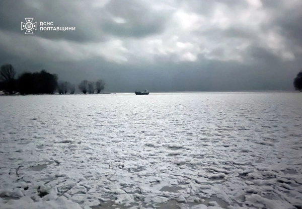 На Полтавщині працівники ДСНС надали допомогу двом чоловікам і одній жінці, які опинилися на човні, що застряг у льоду на Дніпрі поблизу селища Градизьк. Один з чоловіків опинився у воді, іншого чоловіка та жінку евакуювали на сушу за допомогою судна на повітряній подушці.