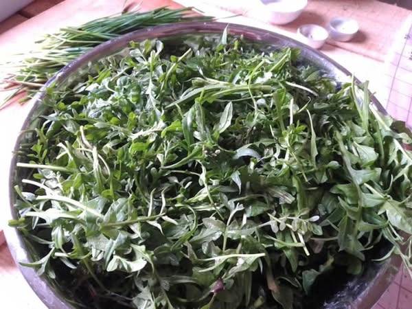 Салат із дикоросів авторства Оксани Олейнюк-Пухняк, професорки, ландафтної дизайнерки: до складу входить яглиця, листя примули, розхідник, салат звичайний, шавлія. Також квіти примули та фіалки. Заправити салат можна за власним смаком.