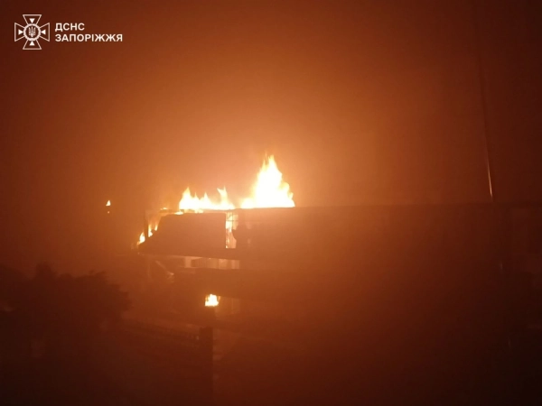 Пізно ввечері 1 січня росіяни атакували Запоріжжя безпілотниками, що викликало загоряння.