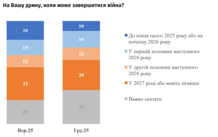 Варто відзначити, що 10% опитаних сподівалися на те, що війна завершиться до початку 2026 року.